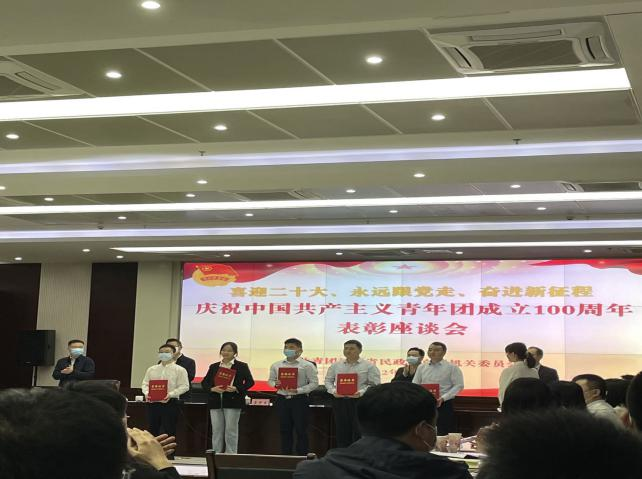 为迎接中国共 产党第二十次全国代 表大会召开,庆祝中国共 产主义青年团成立100周年,教育、引导全厅广大青年干部在建设“五个民政”中奋发有为、建功立业。五四青年节前夕,厅机关团委在厅领导的坚强支持下,隆重举办“喜迎二十大、永远跟党走、奋进新征程”青年干部表彰座谈会,中心青年干部们积极参加了此次表彰座谈会。